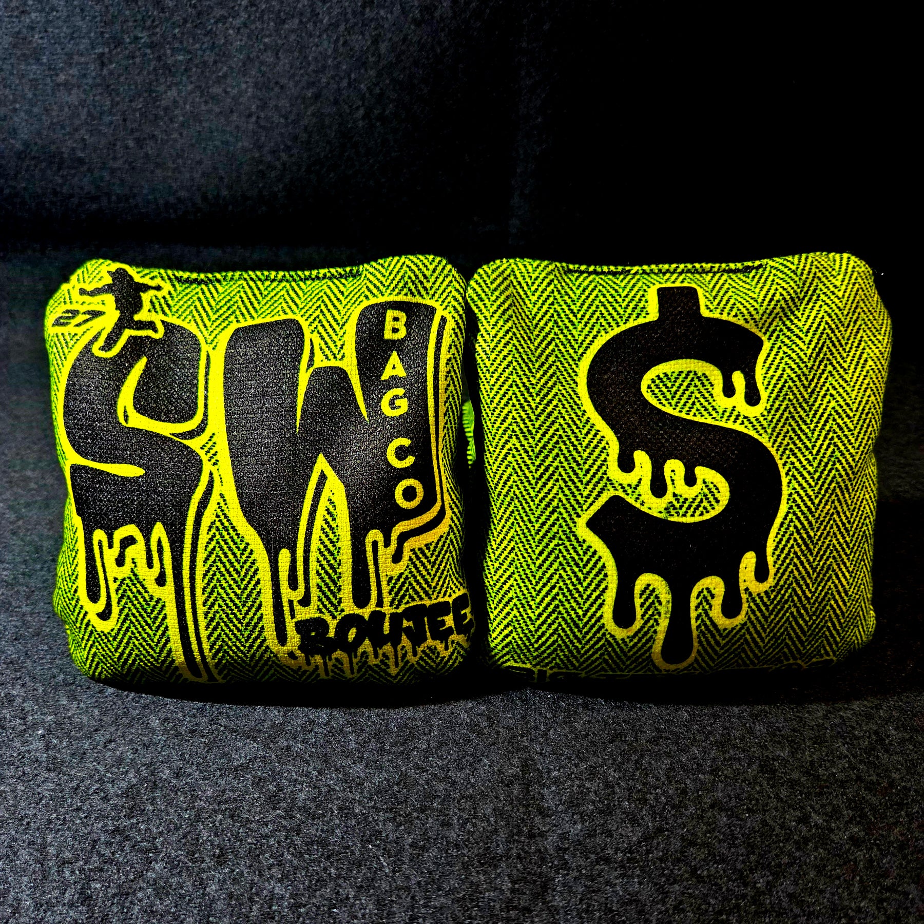 The Boujee was designed for the hole seeker that wants to get their 12 points in style! With a medium large template, and a medium fullness the Boujee will grab the hole and drip like no other bag once broken in. These bags sport a special tri-blend with a bias towards the slide giving them top tier forgiveness and hole friendliness. The fill will still allow shooters with the skill set to roll if needed. The slow side is controllable, but will stay in that 6 range. The fast side is the OG 9 speed material many companies use. It's durable and can blow up any pile or bully even the best of blockers. Collecting these bags is a cheat code sure to annoy your opponent. Grab a set today to find out just how it feels to be Boujee!