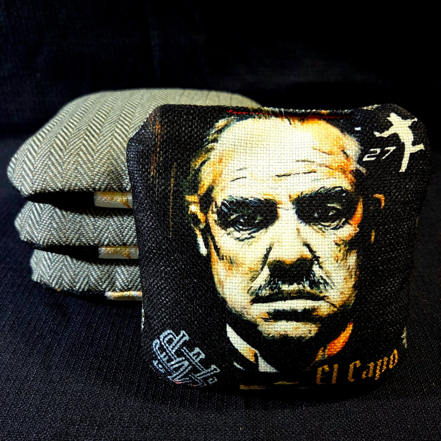 The El Capo is designed for the hybrid game player. With a medium-large template and medium fullness the El Capo was made to stay one step ahead of your opponent. The herringbone carpet is one of the most versatile materials used today, depending on your break-in and use will dictate the speed of the carpet from 6 brand new to about a 4-4.5 once really dirtied up and grimy. We see it more consistently around a 5 speed giving this bag the ability to go from a dirty game to a hole for hole game in the blink of an eye. The fast side is the 8 speed everyone knows and loves giving this bag the material combinations that have taken down championships from all leagues. The fill is a similar to the LTD also with a performance liner similar to the Capo, increasing shot selections and increasing its hole friendliness.